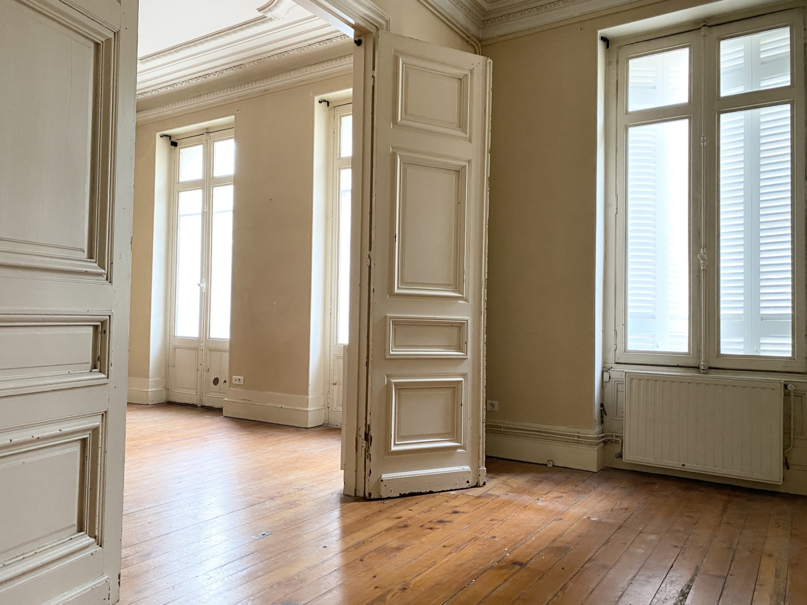 BORDEAUX STALINGRAD - A 300 mètres de la Place Stalingrad et au pied du Tram A, nous vous invitons à découvrir ce très bel appartement de 104m2 environ à rénover, dans un magnifique immeuble en pierre totalement ravalé en 2020. L'appartement se compose d'un très beau salon/séjour - salle à manger de plus de 33m2, deux chambres donnant sur un agréable patio de 2,30m2, une troisème chambre avec sa salle d'eau, une salle de bains, wc séparés et une grande cuisine séparée avec coin repas. Vous serez charmés par ses volumes et ses prestations anciennes conservées. Appartement traversant donnant sur un agréable jardin commun. L'appartement est situé au 1er étage. Une cave en sous-sol est également vendue avec l'appartement. Coup de coeur assuré ! Ravalement de façade, remise en peinture des communs et toiture refaits en 2020.
