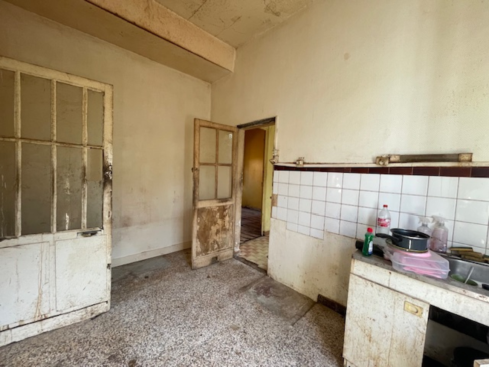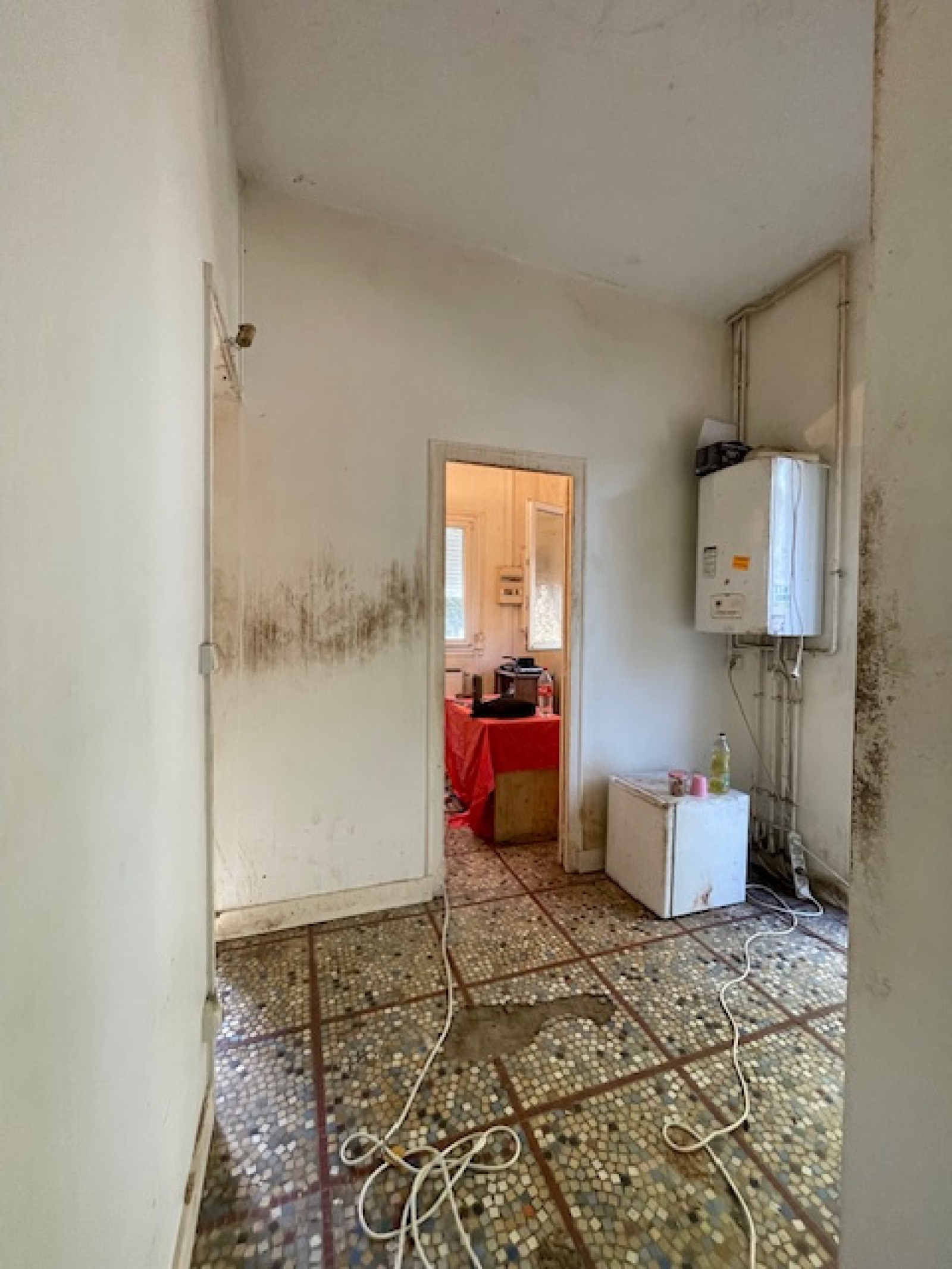 Accès par séjour. Fenêtre sur passage côté (le plus étroit) de la maison